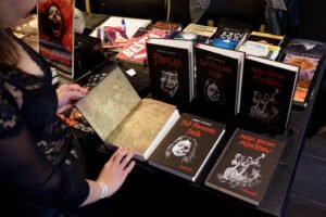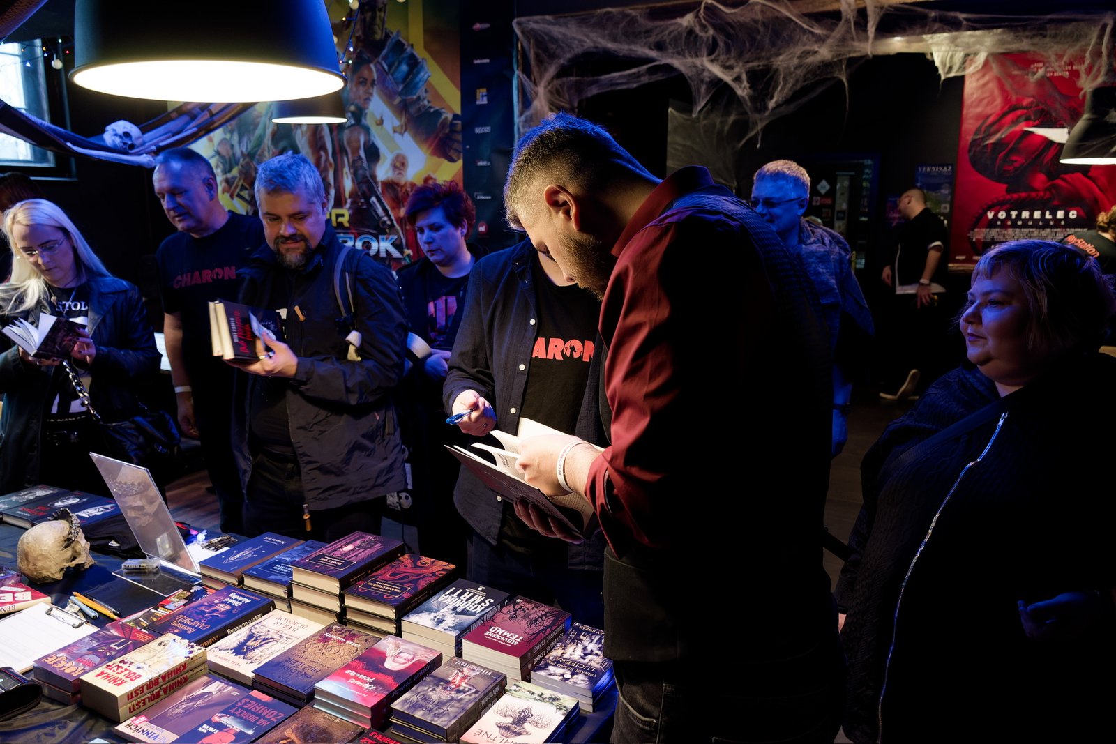 - | Stánok s hororovými knihami a merchom (Charon) |